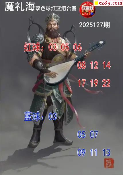 > 双色球2025年图迷127期 礼海红蓝组合图