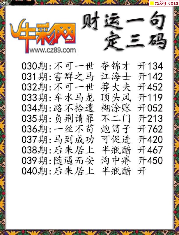 > 福彩3D2026040期财运一句定三码字图谜