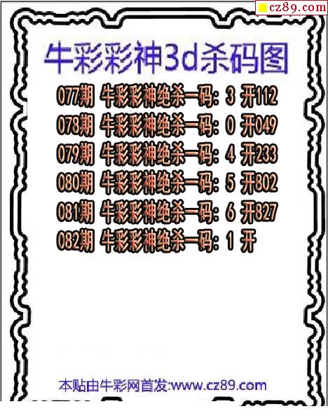 > 牛彩彩神杀码2026082期3d图谜(原创)